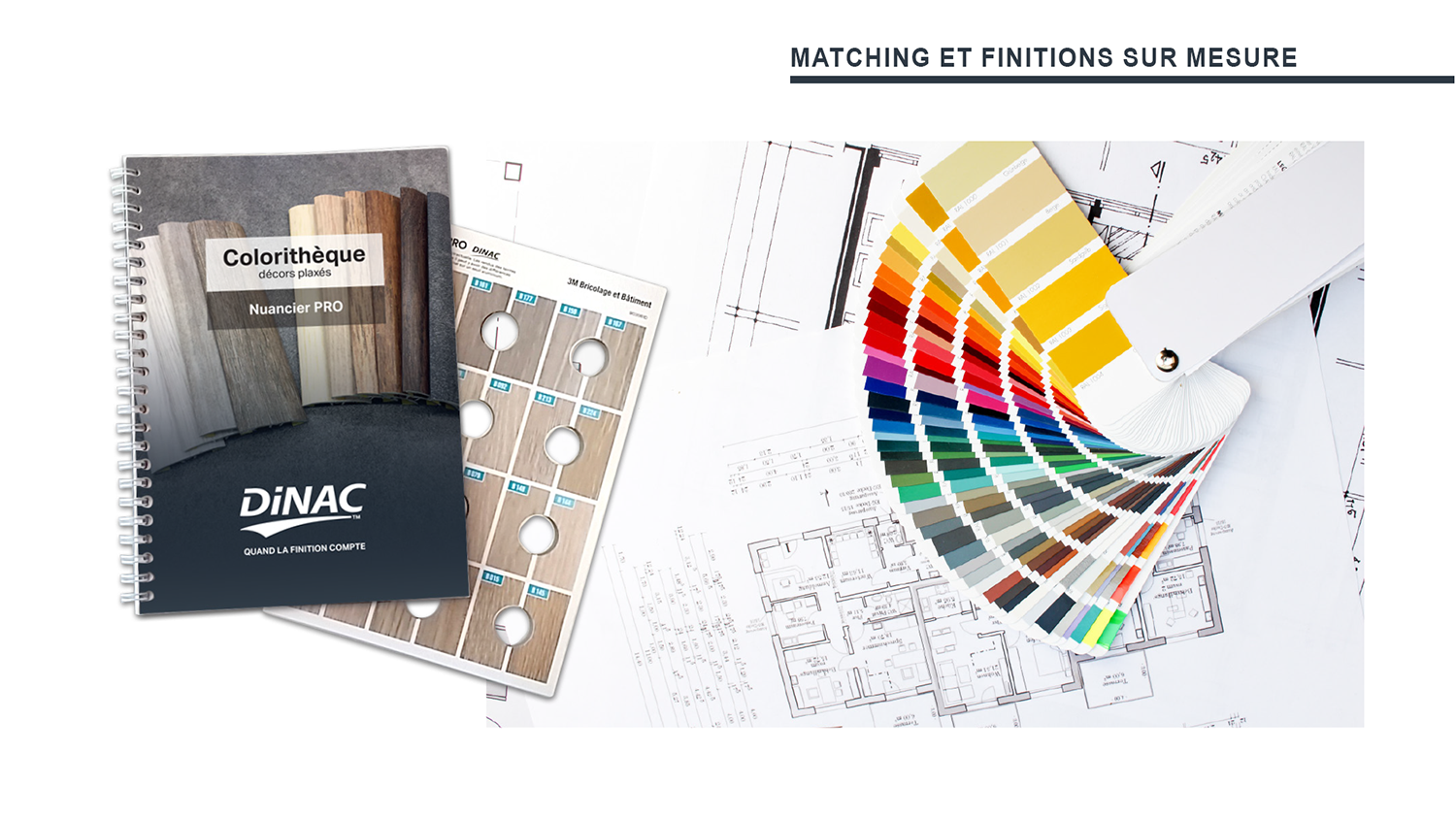 Afin de vous proposer une collection de profilés en adéquation avec vos revêtements, nous réalisons un matching : nous recherchons la correspondance entre nos coloris de plaxage et votre revêtement de sol (stratifié, sol souple PVC, carrelage …), ou développons le décor adapté. Grâce à notre impression numérique, nous fabriquons des profilés en petites quantités avec une grande flexibilité.